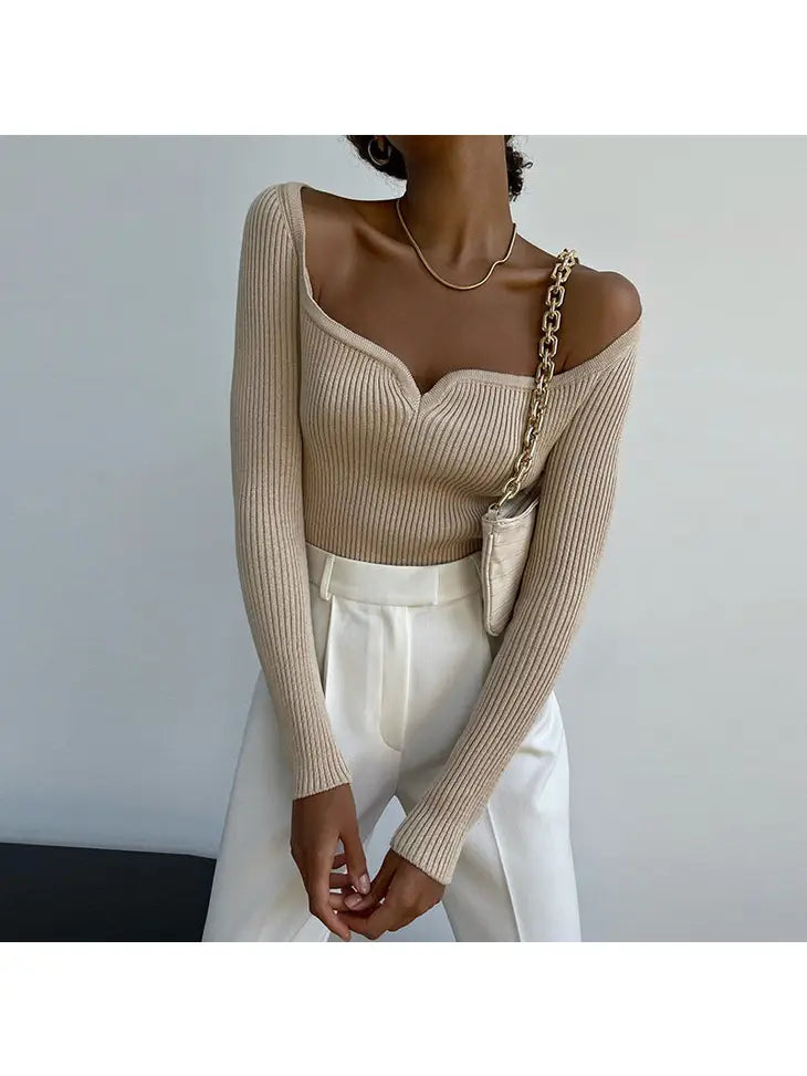 Elaine Portrait Neck Knit Top in Khaki